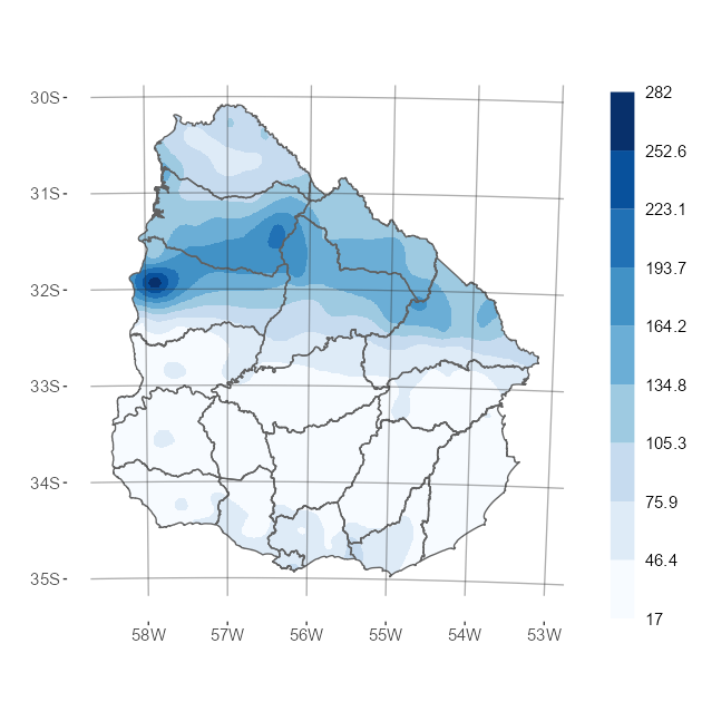 Para los mapas de precipitación acumulada se presentan los valores mensuales, en todos los pluviómetros que constituyen la Red Pluviométrica Nacional en milímetros.