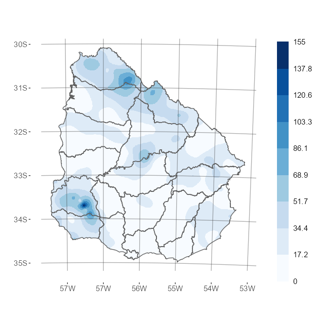 Para los mapas de precipitación acumulada se presentan los valores mensuales, en todos los pluviómetros que constituyen la Red Pluviométrica Nacional en milímetros.