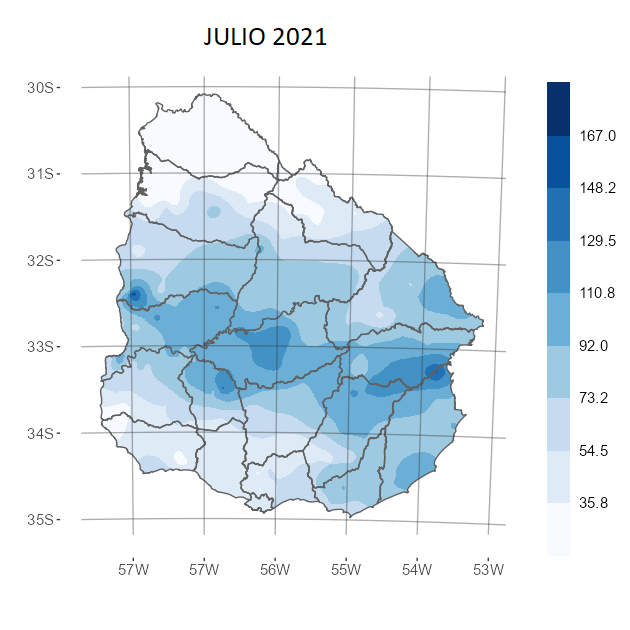 Para los mapas de precipitación acumulada se presentan los valores mensuales, en todos los pluviómetros que constituyen la Red Pluviométrica Nacional en milímetros.